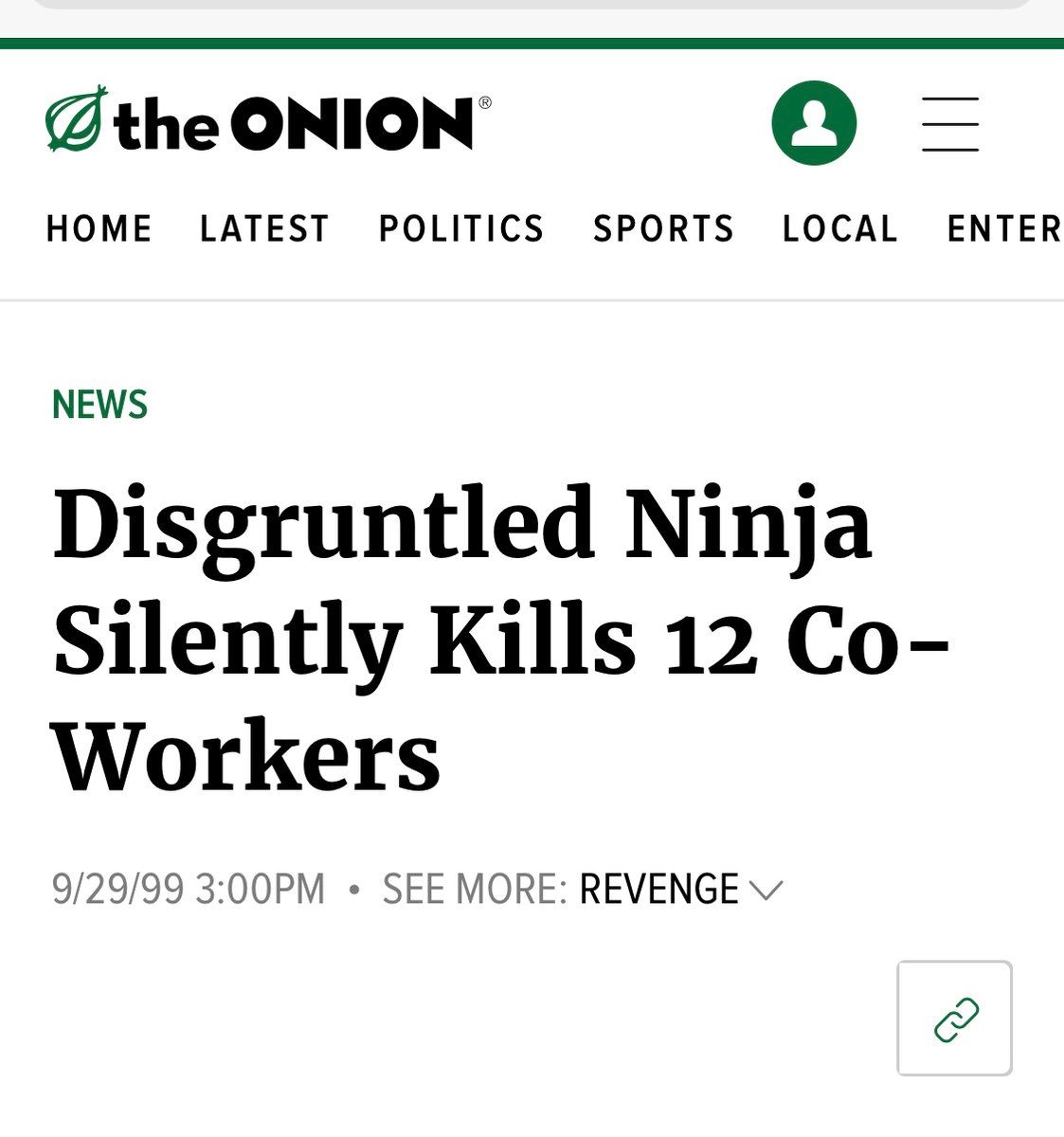 theonion.com/disgruntled-ninja-silently-kills-12-co-workers-1819565345