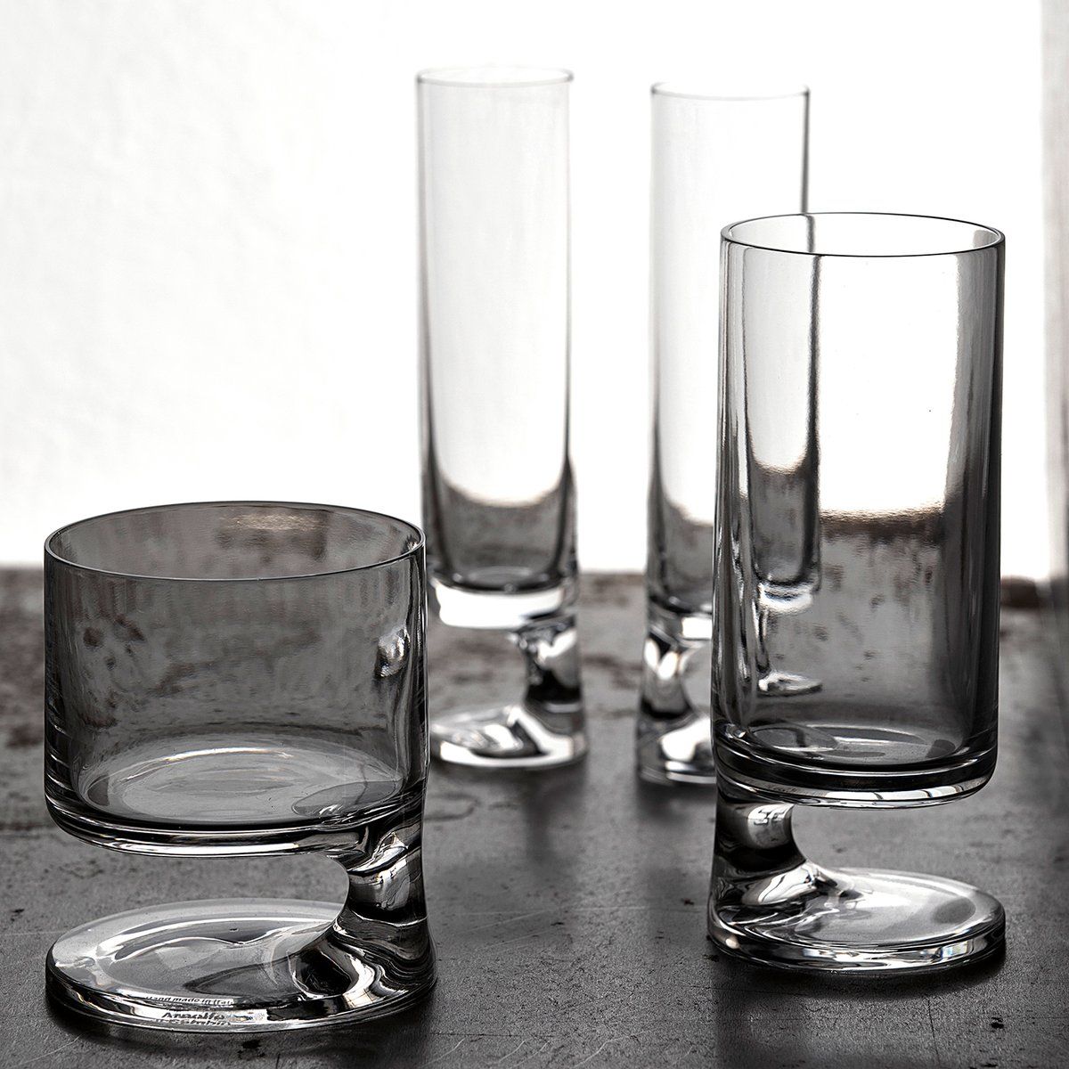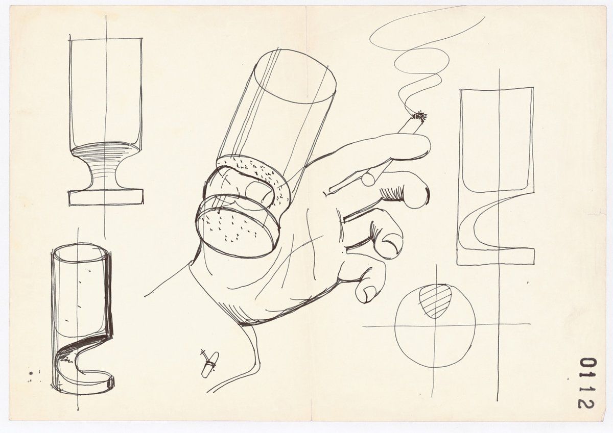 Joe Colombo (1930-1971) made some highball/old fashioned glasses so you could casually smoke while you drank. Not a household name but a true legend.
