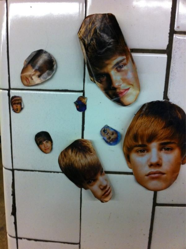 : Spotted this Bieber art on the walls of the 42nd Street subway station today.