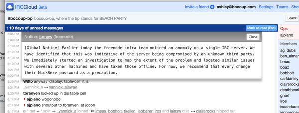 : looks like *FREENODE* was compromised yesterday. change you NickServ passwords!